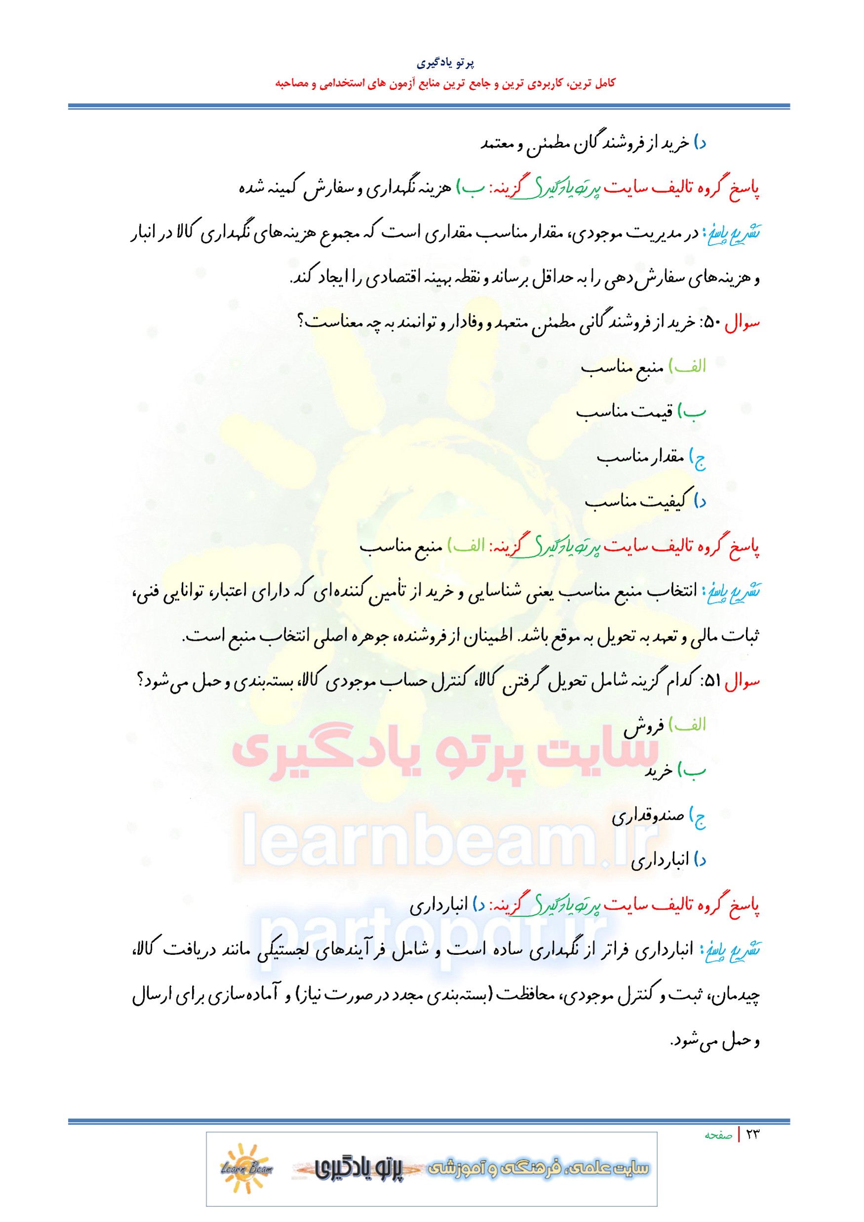 مجموعه سوالات و تست سیستم های خرید و انبارداری و توزیع با پاسخ تشریحی
