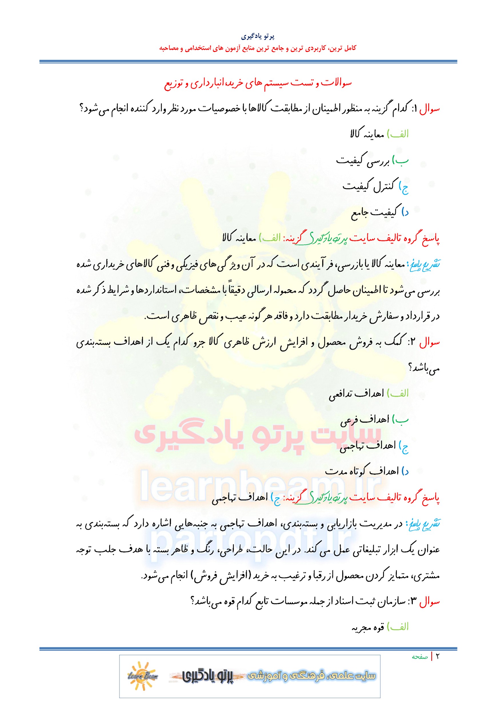 سوالات و تست سیستم های خرید و انبارداری و توزیع