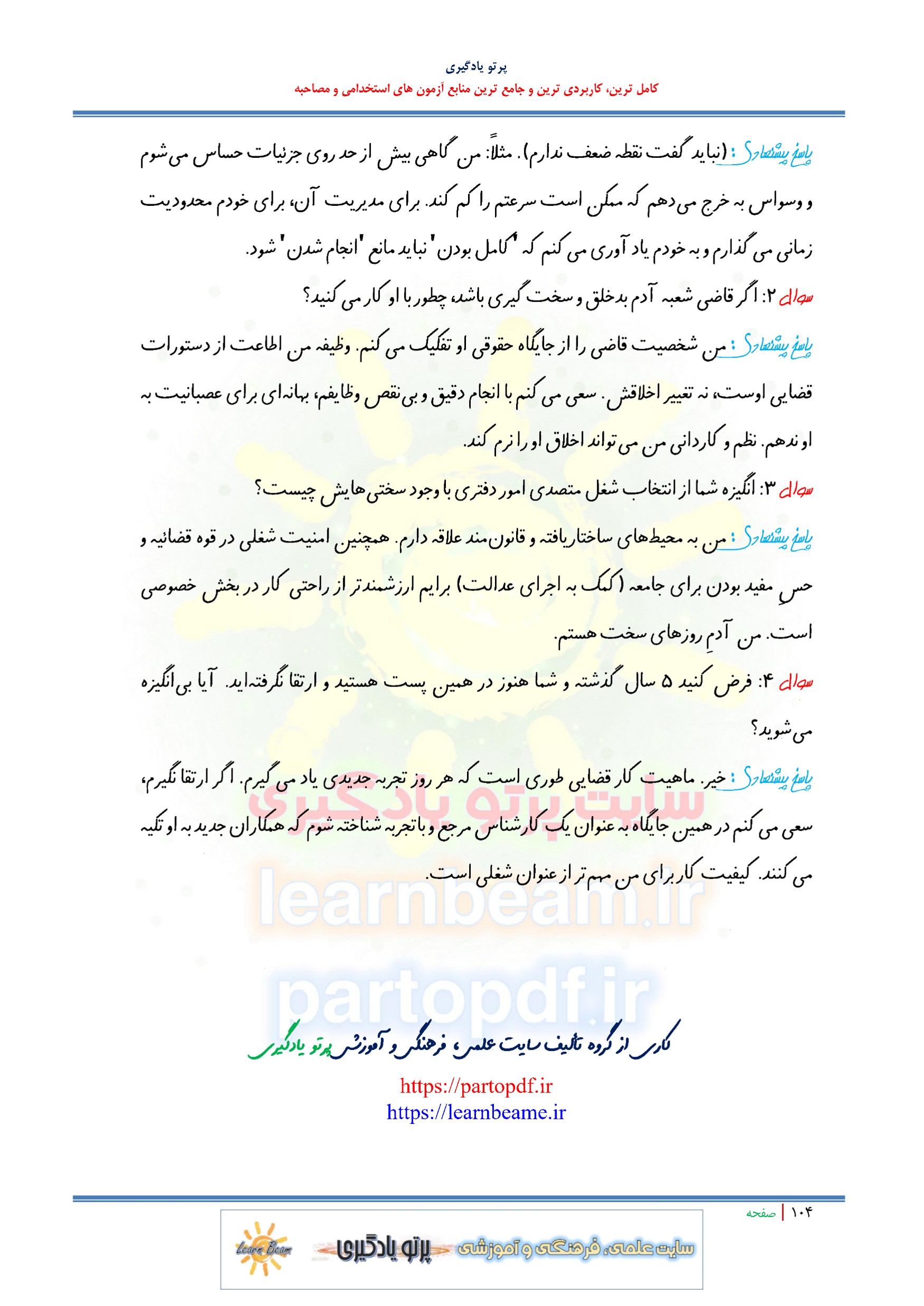 شامل سوال و جواب کاملا کاربردی با پاسخ پیشنهادی در 104 صفحه