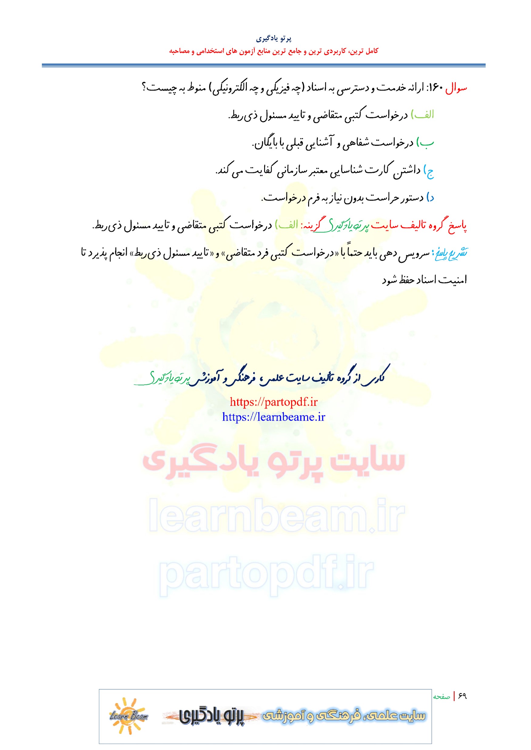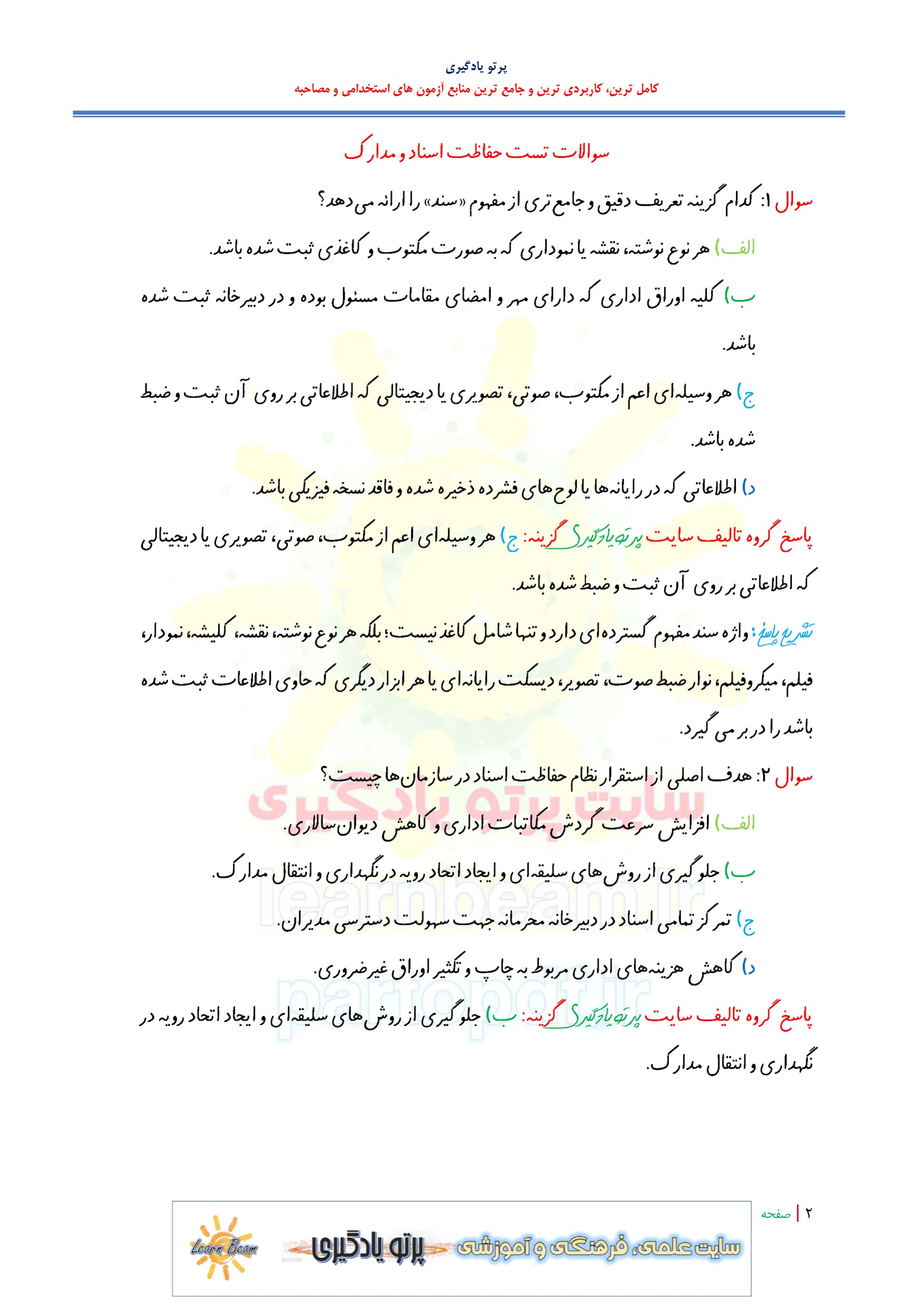 سوالات و تست حفاظت اسناد و مدارک