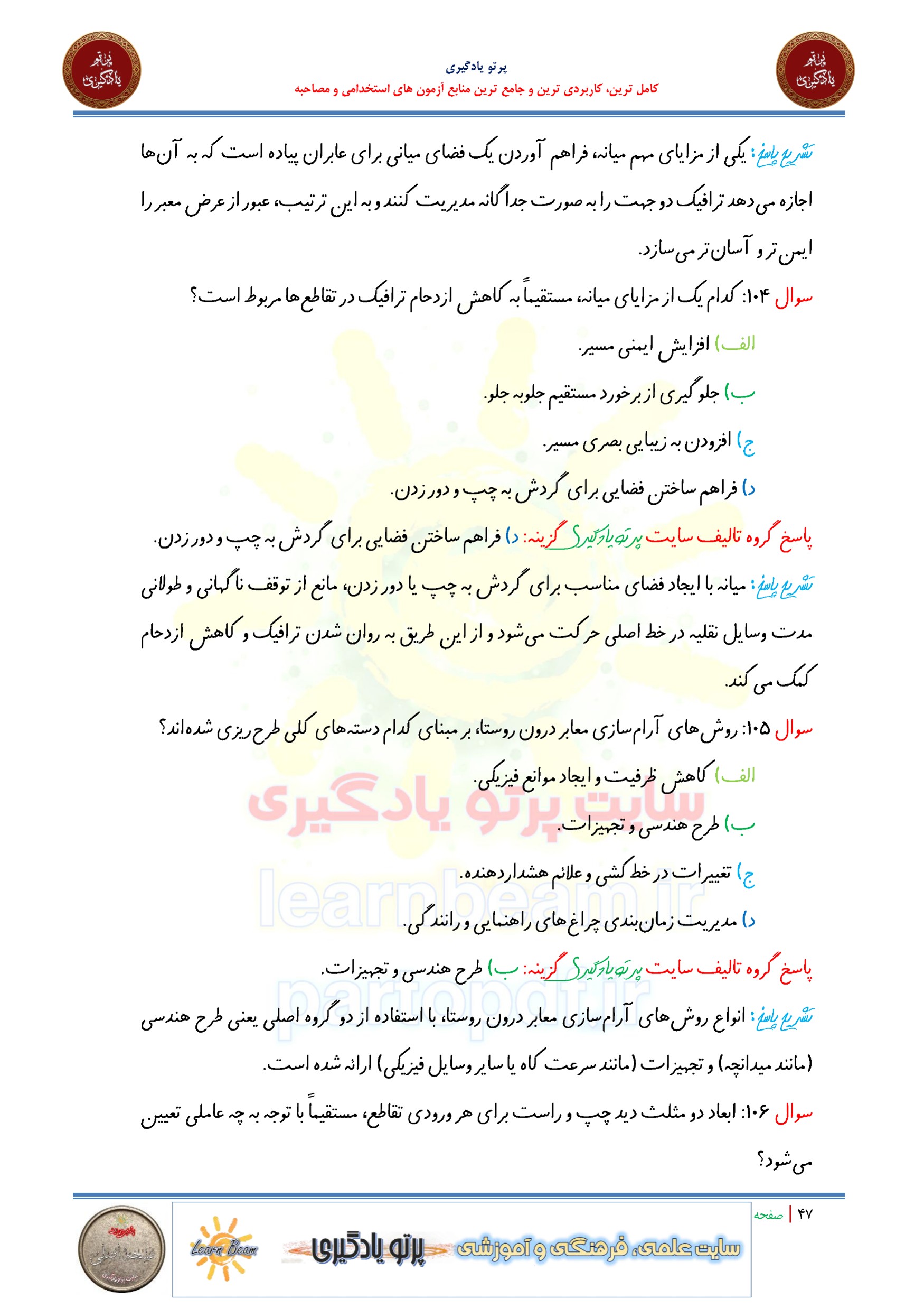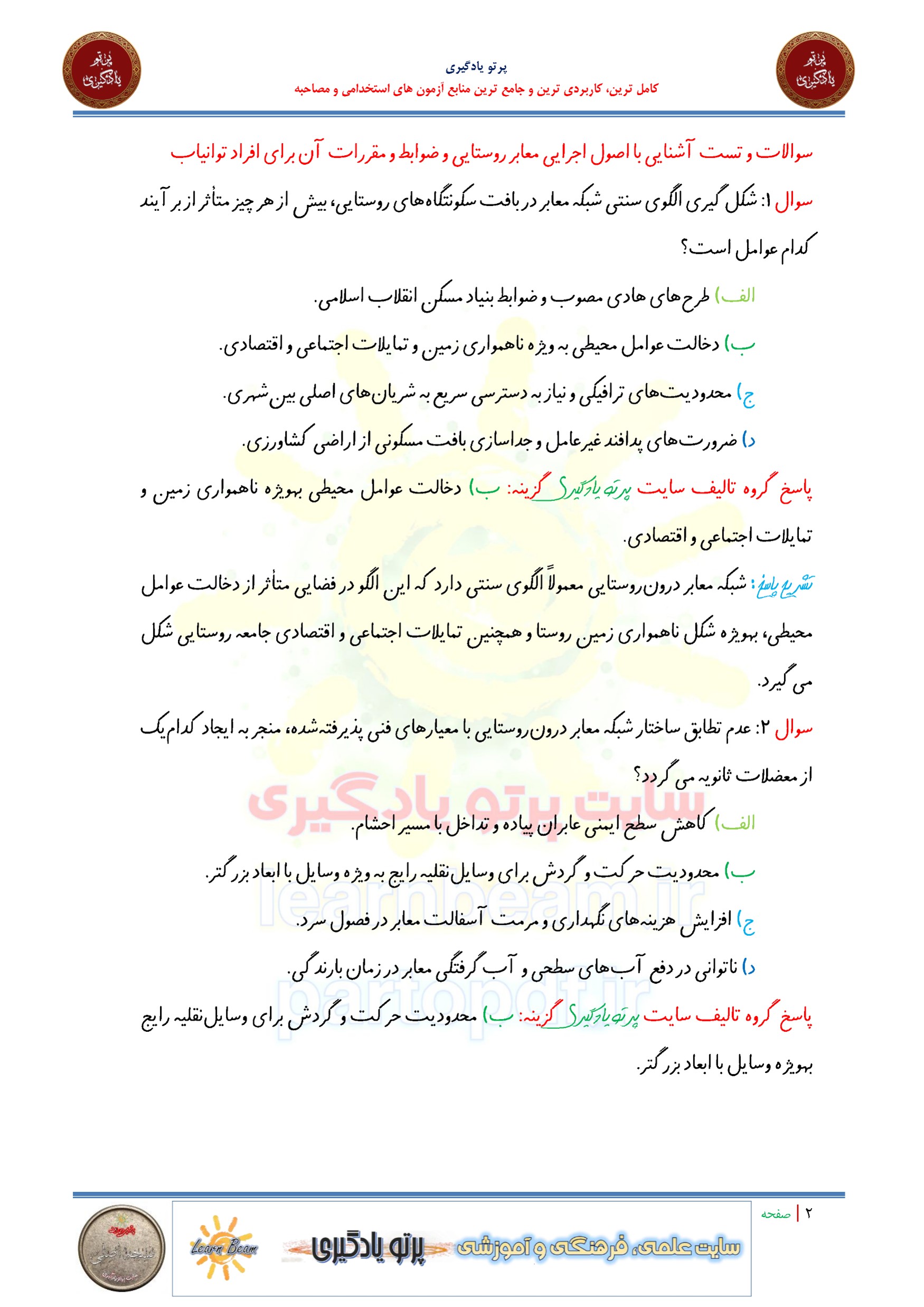 مجموعه سوالات و تست آشنایی با اصول اجرایی معابر روستایی و ضوابط و مقررات آن برای افراد توانیاب با پاسخ تشریحی