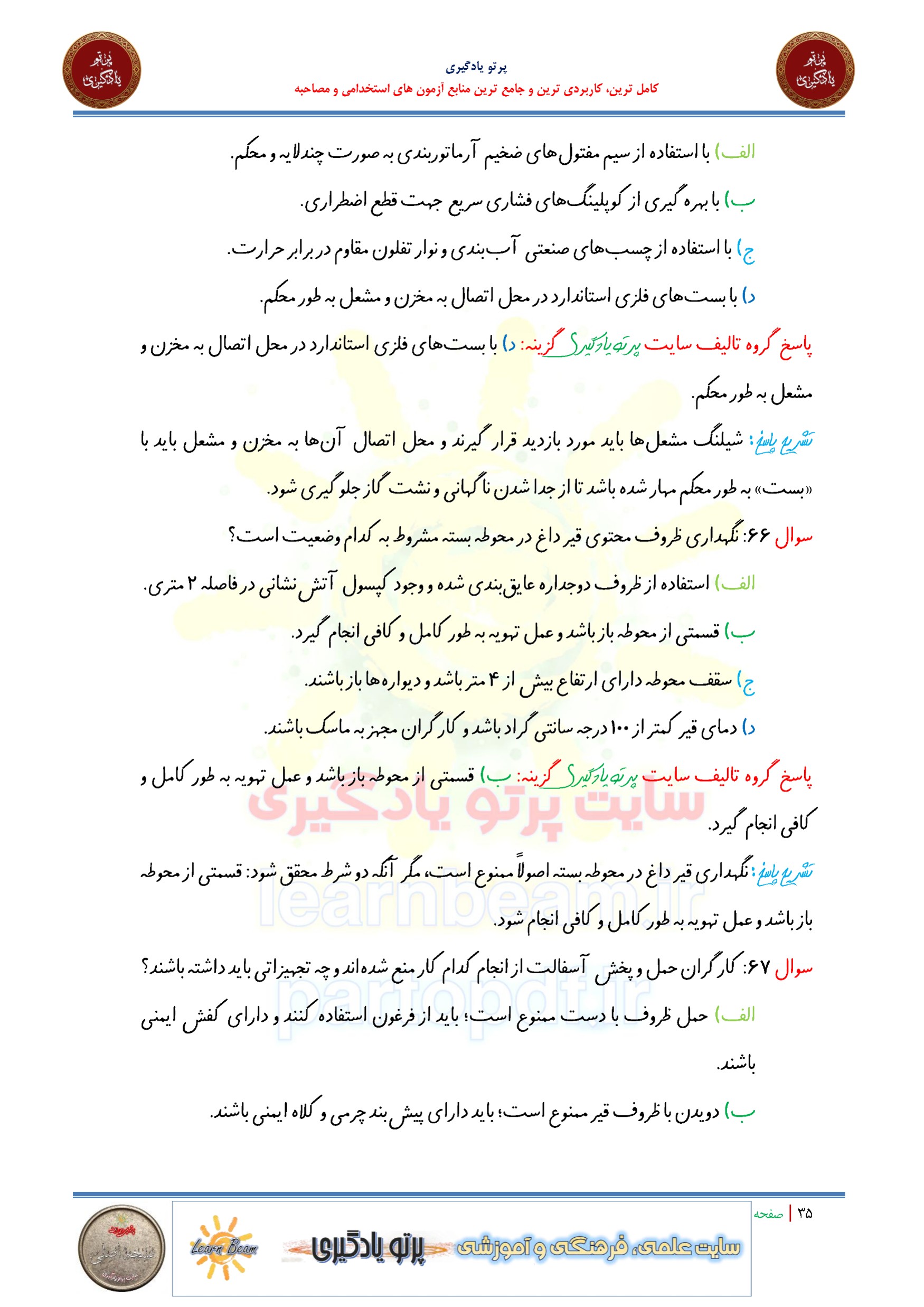 سوالات و تست مبحث دوازدهم مقررات ملی ساختمان