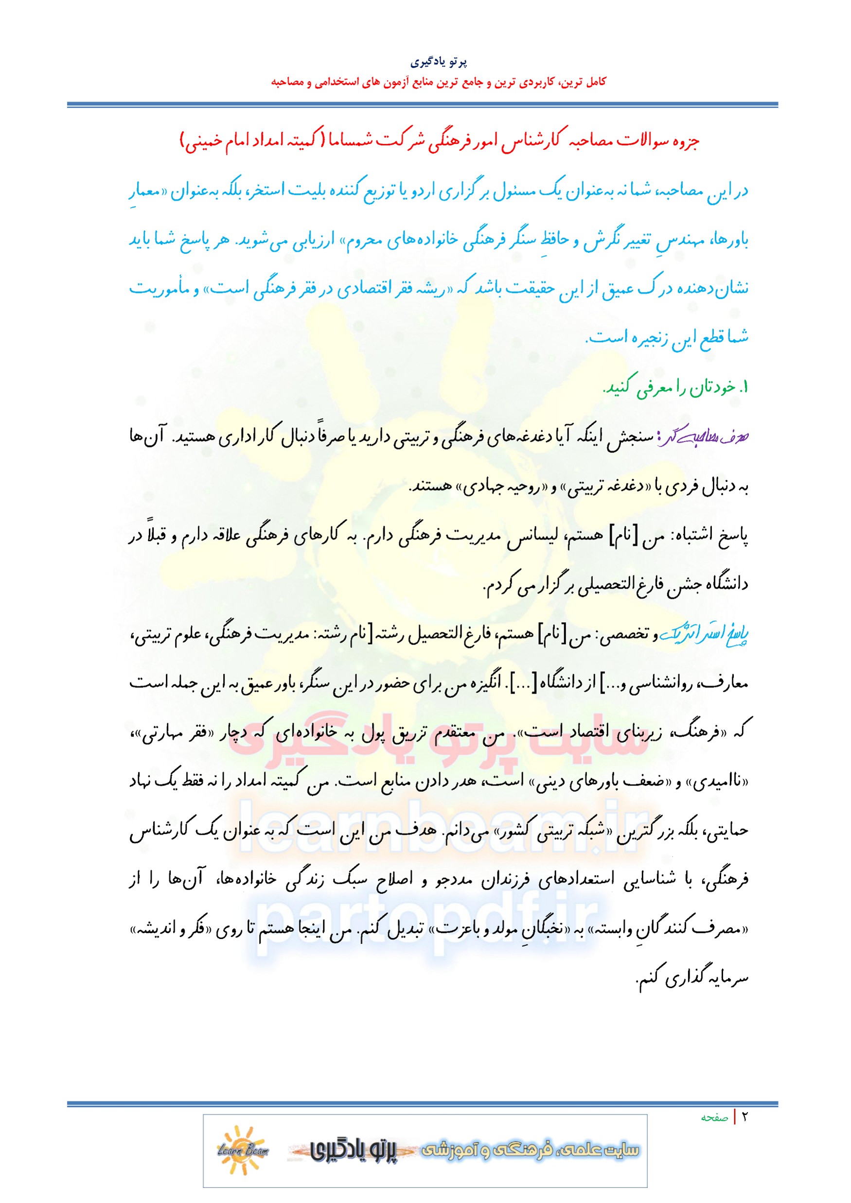 مجموعه سوالات آمادگی برای مصاحبه کارشناس امور فرهنگی استخدامی شرکت شمساما (کمیته امداد)