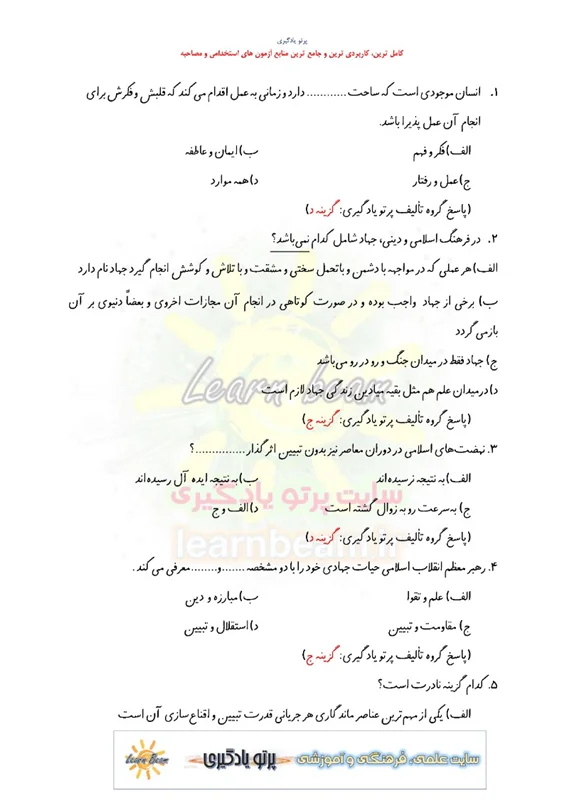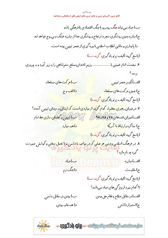 سوالات تستی کتاب جهاد تبیین در اندیشه آیت الله خامنه ای