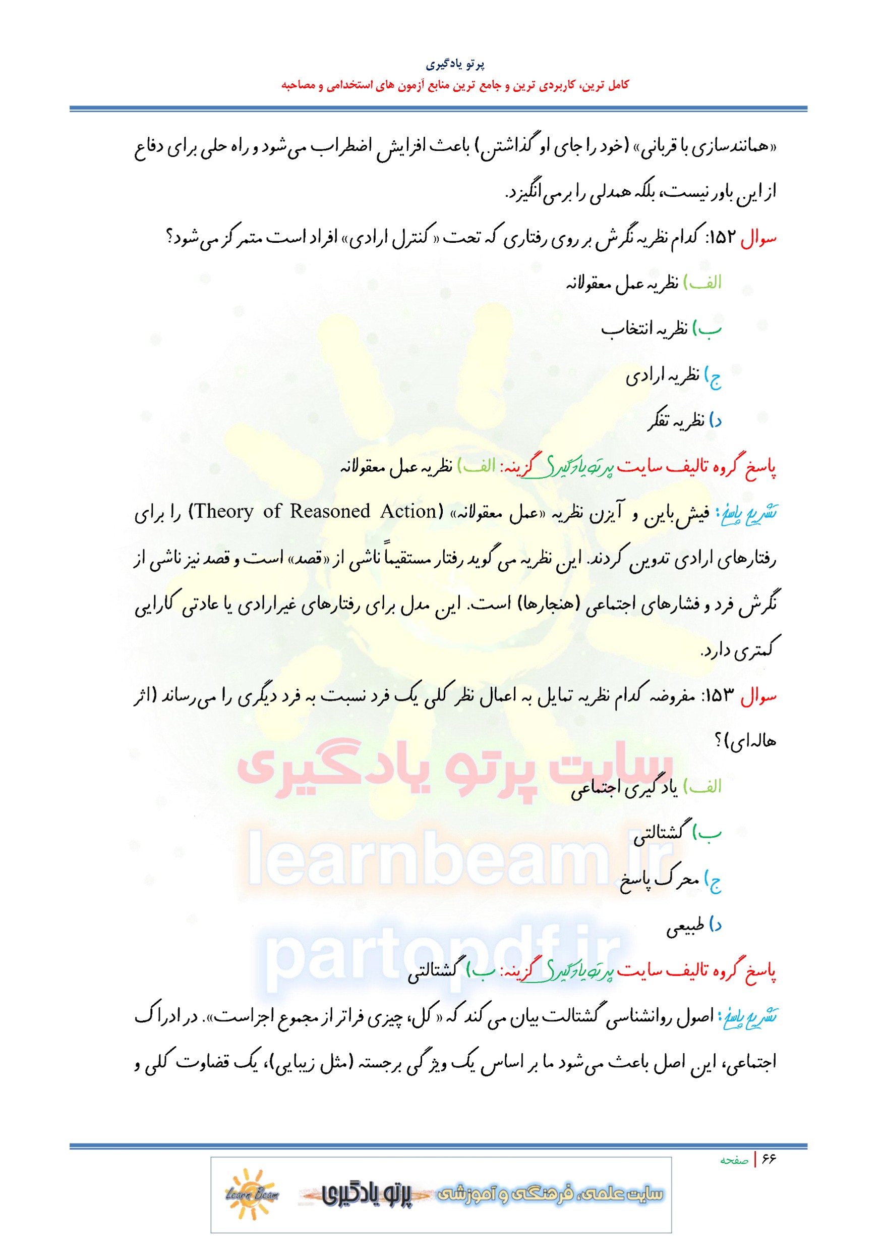 سوالات و تست روانشناسی اجتماعی شامل 185 تست باپاسخ در 80 صفحه در قالب فایل pdf قابل چاپ با کیفیت عالی جهت انسجام ذهنی، خودآزمایی و مطالعه سریع داوطلبین شرکت کننده در آزمون های استخدامی می باشد. این مجموعه مطابق با دفترچه ثبت نام و مطابق با سرفصل های اعلام شده در دفترچه راهنمای ثبت نام می باشد.
