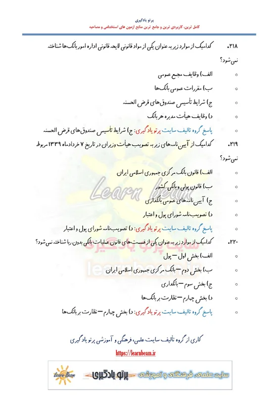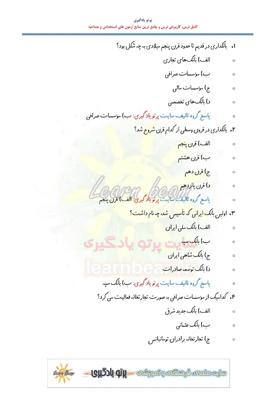 مجموعه سوالات تستی اصول بانکداری شرکت کنندگان آزمون استخدامی بانک ها را در مرور سریع مفاهیم و موضوعات مهم یاری رسان خواهد بود.